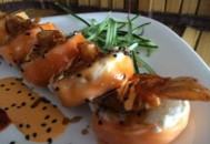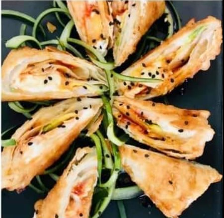 Deliciosos Arumakis, tortillas de harina fritas rellenas de queso Philadelphia, salsa sriracha y camarón, bañados en salsa de anguila con ajonjolí. Una combinación de sabores y texturas única que te sorprenderá.