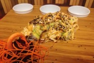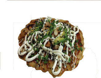 Prueba nuestra Okonomiyaki, la pizza japonesa reinventada. Rellena de vegetales y glaseada con salsa okonomiyaki, que incluye queso Philadelphia, aguacate y tu elección de camarón o pollo. Coronada con salsa de anguila y ajonjolí.