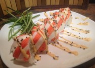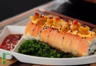 Disfruta de nuestro 'Masago Especial', un rollo con masago por fuera, gratinado con aderezo de tres mariscos y bañado en salsa de anguila. En su interior, una opción vegetariana con una mezcla de sabores y texturas únicas.