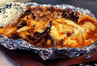 Experimenta el sabor explosivo de 'Tan tan taan': camarón y pulpo en salsa de chile guajillo, coronados con queso gratinado. Acompañado de arroz blanco realzado con el toque crujiente del ajonjolí.