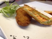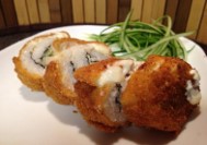 Prueba nuestro 'Dos Quesos', un rollo empanizado con queso philadelphia y queso gouda por fuera, y relleno de pepino, aguacate y queso philadelphia, con la opción de añadir tu elección de mariscos.