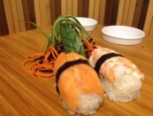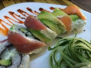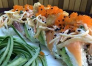 Prueba nuestro 'Usagi', un rollo con zanahoria por fuera, coronado con ensalada de surimi, camarón empanizado, aguacate y salsas sriracha y de anguila. En su interior, una mezcla de aguacate, queso philadelphia y pepino.