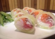 Prueba nuestra opción refrescante 'Cucumber', un rollo que destaca por su capa exterior de pepino fresco y su relleno interno de exquisitos mariscos, aguacate y queso philadelphia.