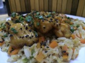 Disfruta de la frescura cítrica en nuestro plato Orange: tierno pollo a la naranja, perfectamente acompañado de arroz frito y realzado con el toque crujiente del ajonjolí y la frescura del cebollín.