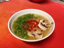 Sumérgete en la autenticidad con nuestra Sopa Misoshiro, un clásico japonés. Acompañada de fideos harusame, cebollín y champiñones, realzados con la irresistible salsa sriracha.