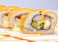 Descubre nuestra tentadora Jacket: una deliciosa bola de arroz rellena de suave queso Philadelphia y mariscos, cubierta con una capa de queso Philadelphia y aguacate por fuera.